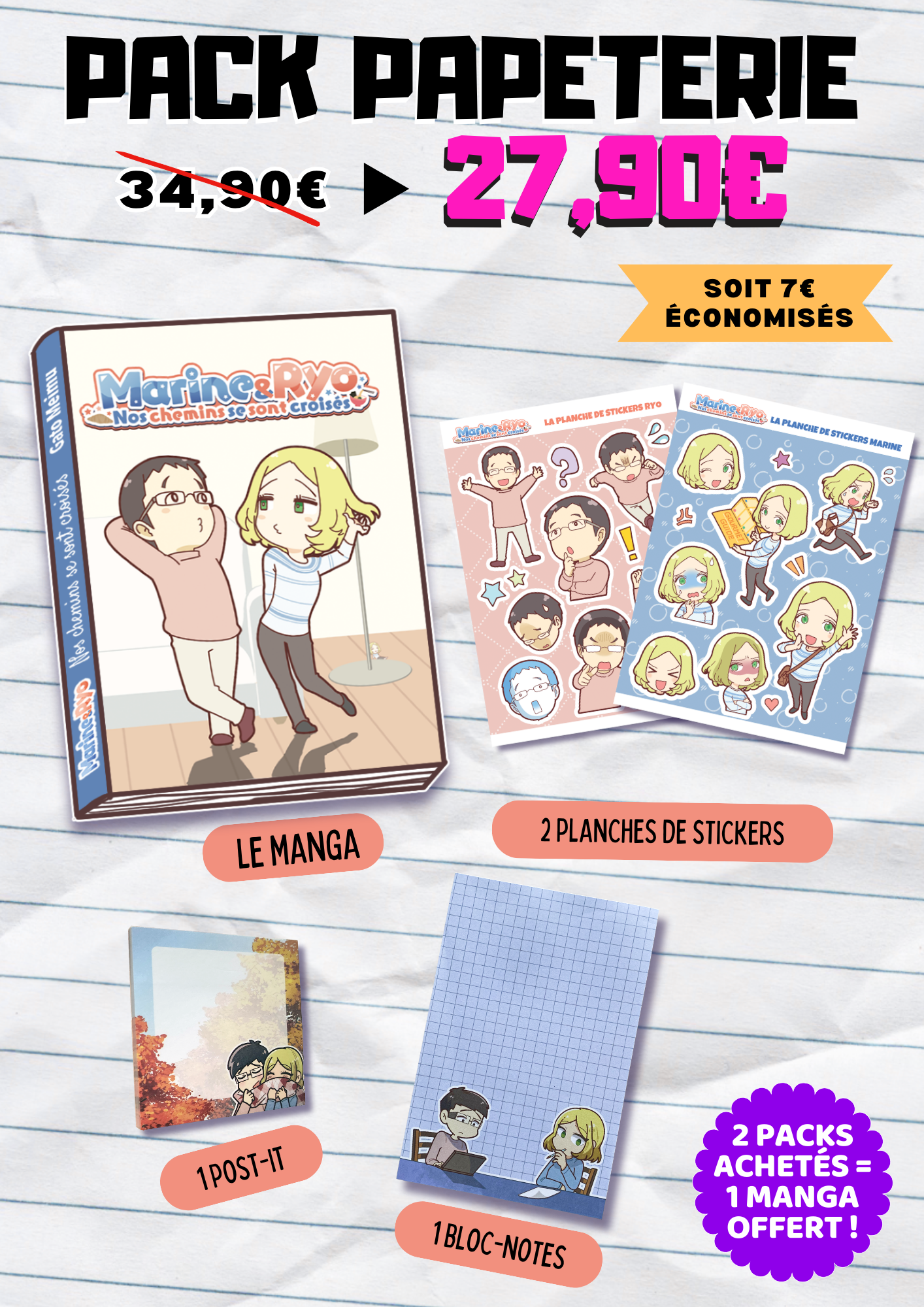 Un pack pour les fans de papeterie qui regroupe le manga avec des goodies papier !